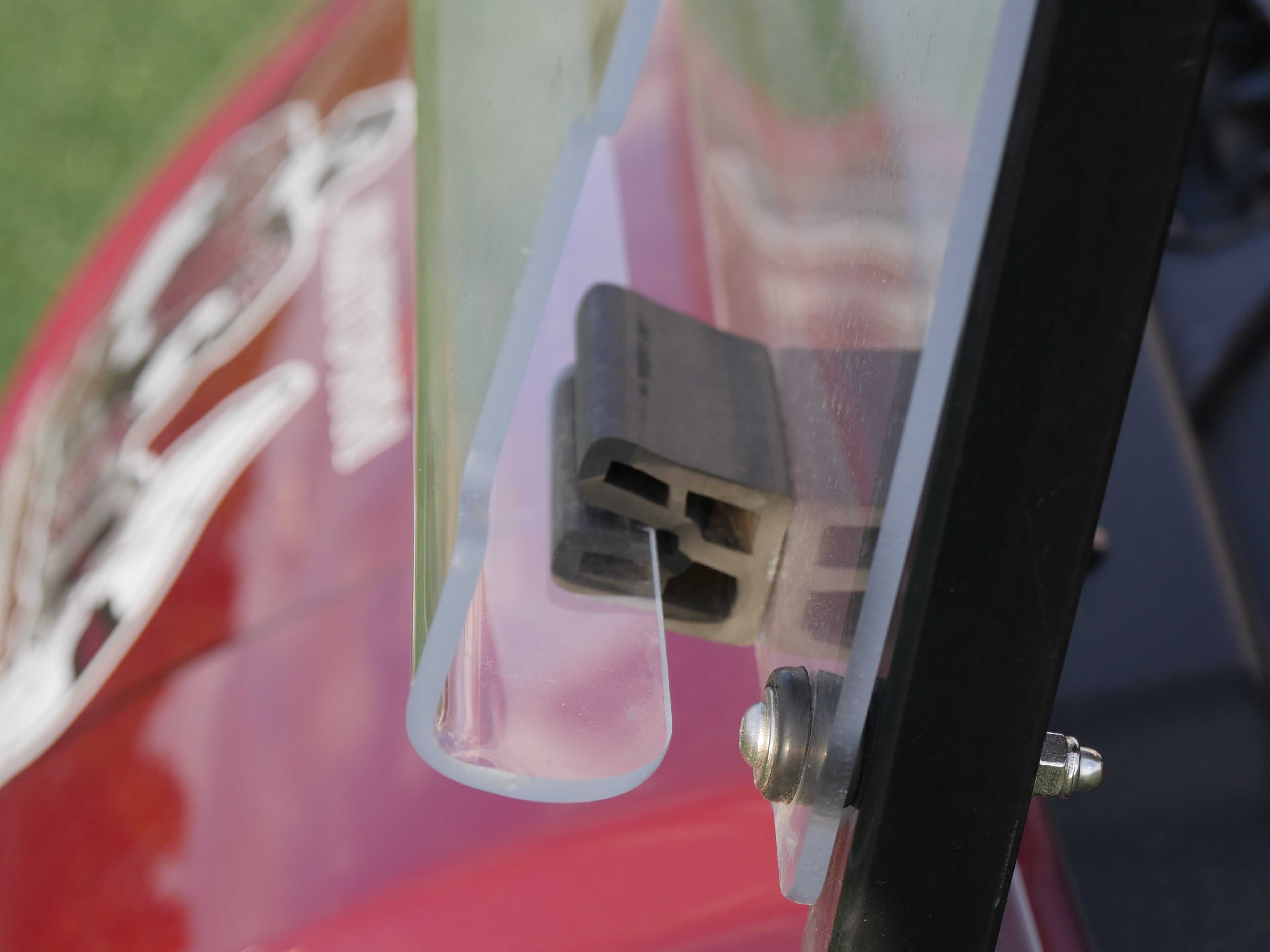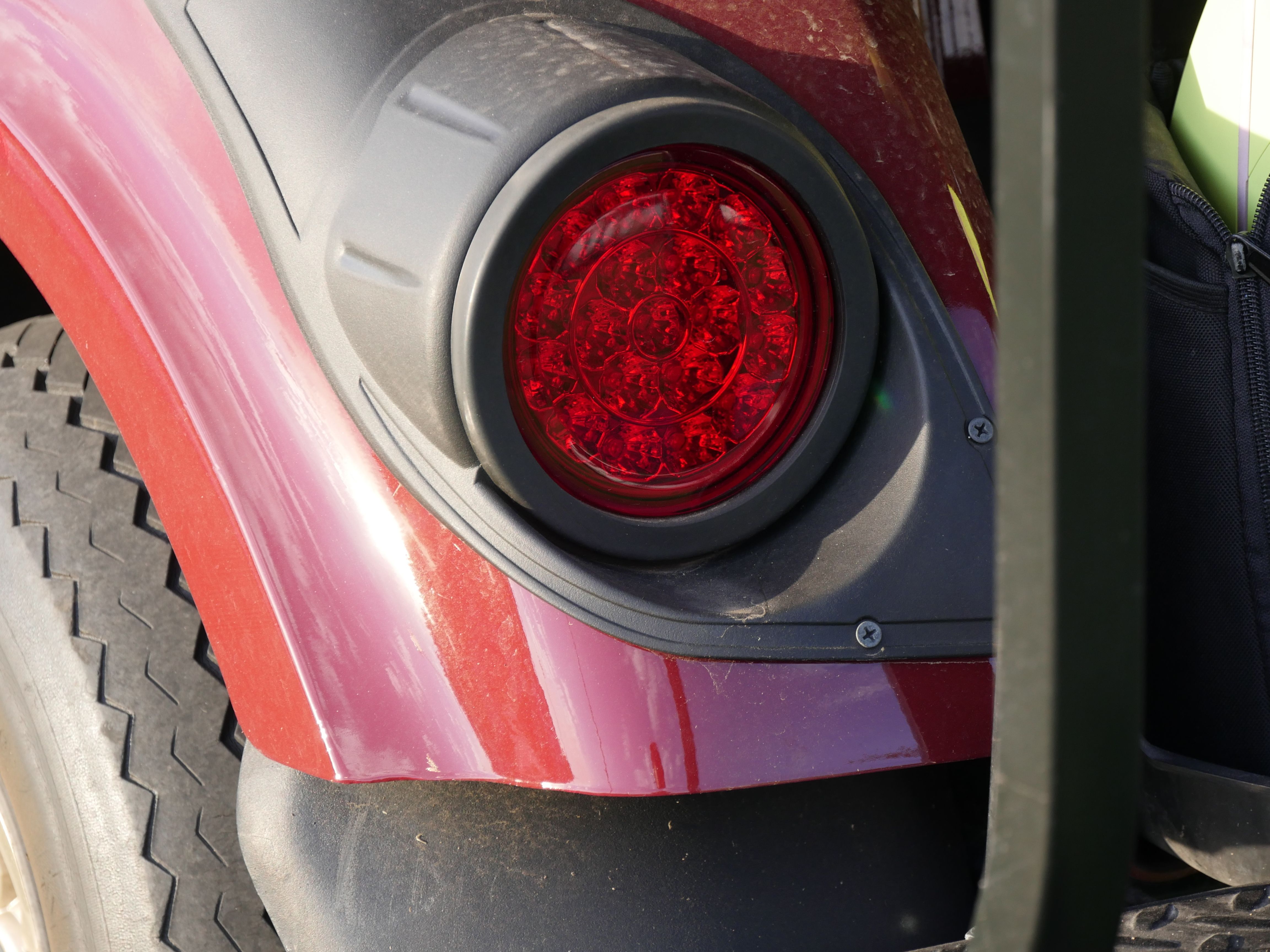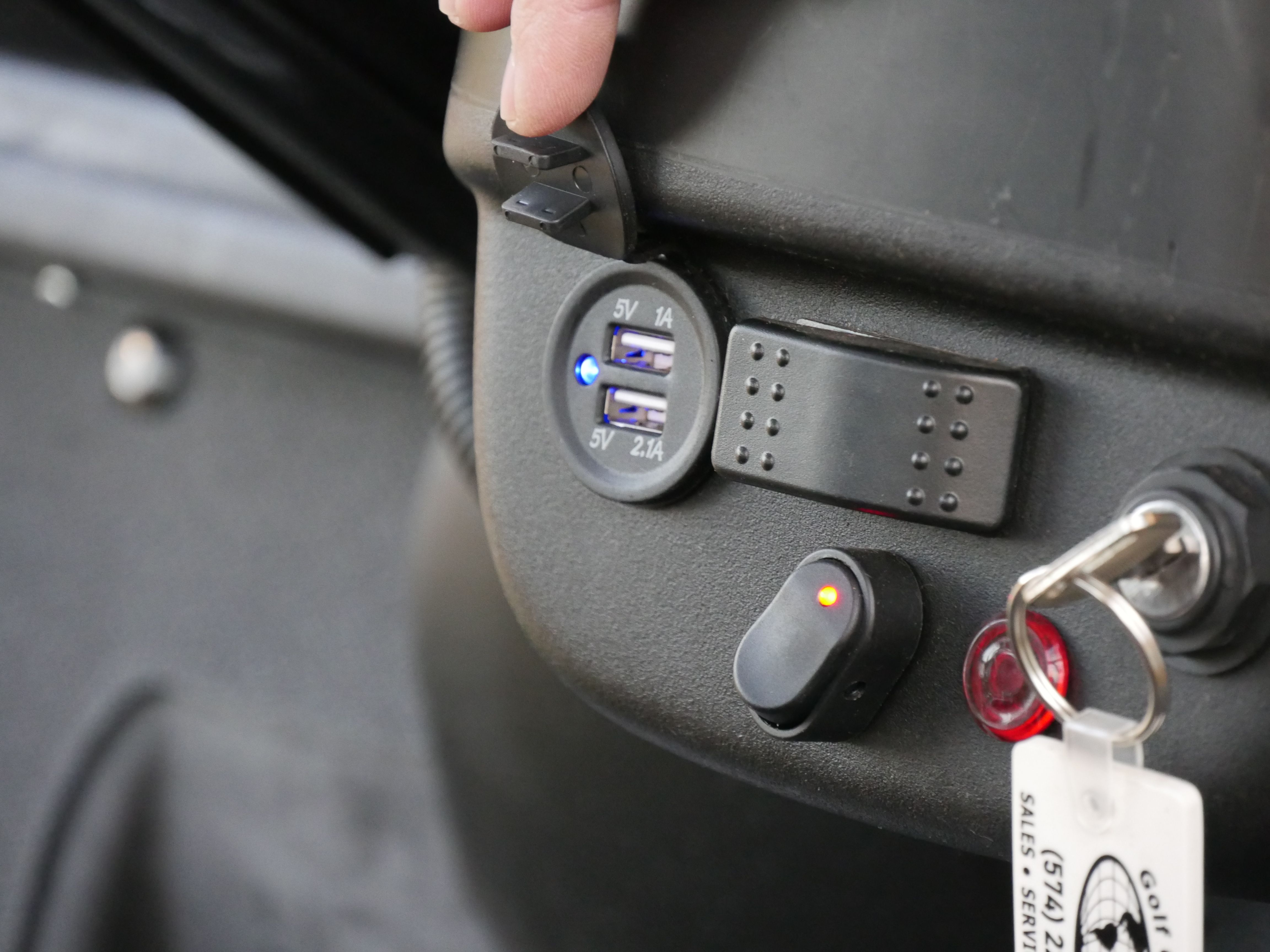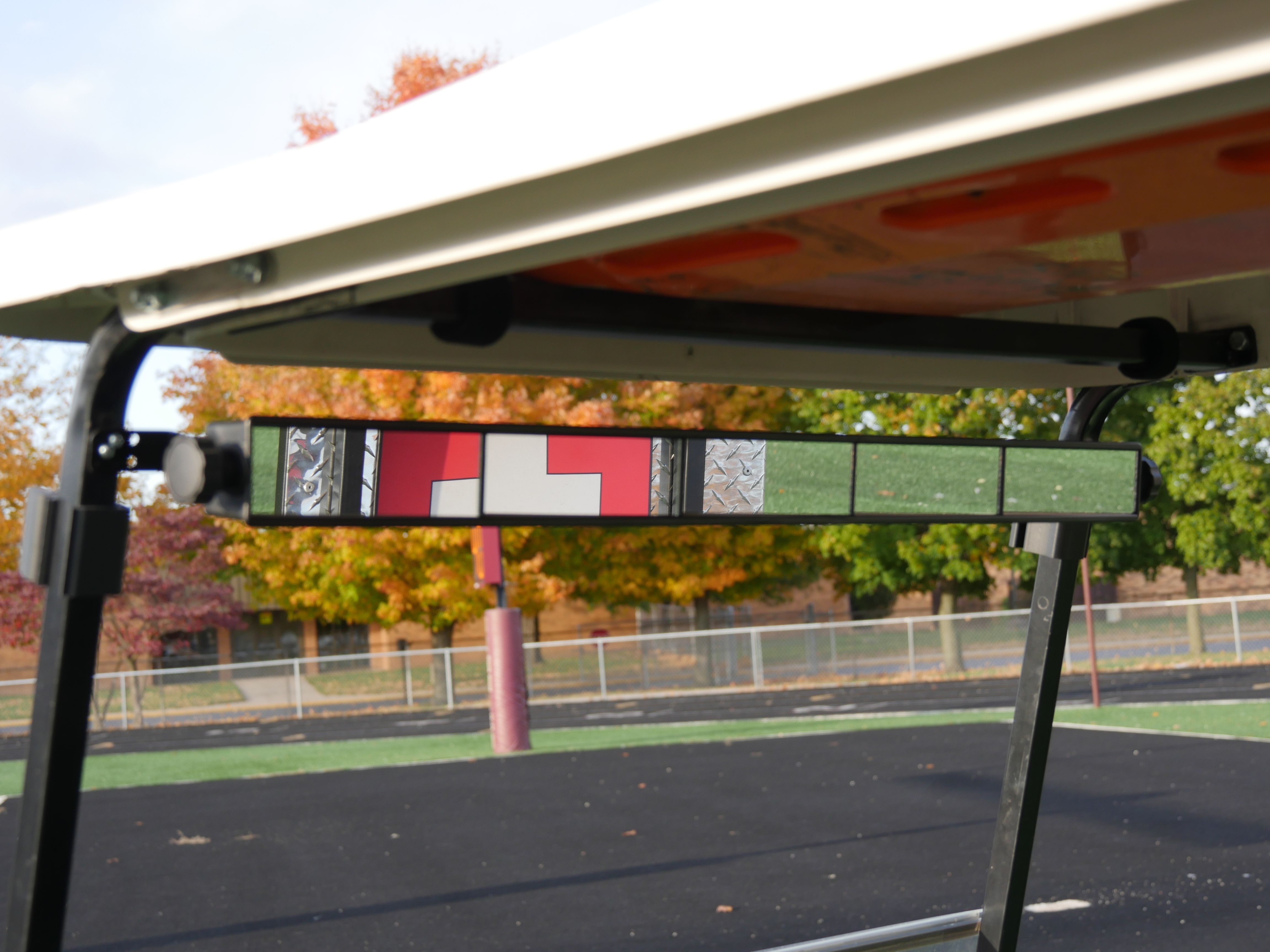 Located under the roof of the emergency cart is a back stretcher, crutches and additional medical supplies and straps. On the rear of the cart there is a platform to haul water and additional supplies while not using the medical cart for injuries or additional personnel. The cart has a full width rear view mirror to keep a safe eye on passengers while driving cautiously to medical attention destination. Extra padded seats have been installed for daily comfort and use.